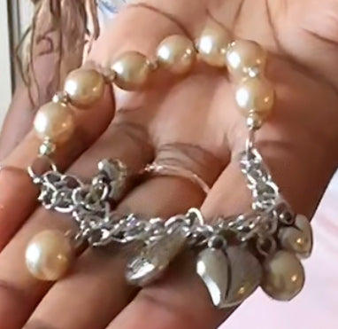 - Pink Pearl & Silver Charm Bracelet (fits small wrists can be used as a charm for the bag)